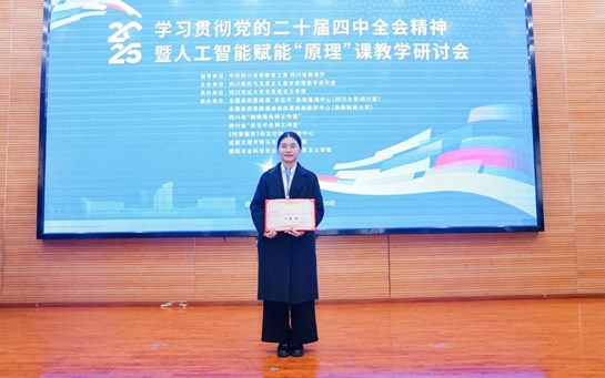 学院教师荣获四川高校马克思主义基本原理教学研究会2025年年会教学竞赛一等奖11月29日,四川高校马克思主义基本原理教学研究会2025年年会在四川农业大学举办。本次年会以“学习贯彻党的二十届四中全会精神暨人工智能赋能‘原理’课教学”为主题。在本次年会教学竞赛中,马克思主义学院教师曾环书以《薪火汇史人民创世》为题参加教学...