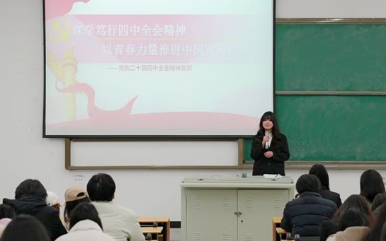 • 大学生理论宣讲团宣讲党的二十届四中全会精神为深入学习宣传贯彻党的二十届四中全会精神,引领青年学子准确把握国家发展蓝图,自觉将个人成长融入中国式现代化伟大实践,12月14日,成都外国语学院大学生理论宣讲团在第二教学区阶梯教室A202成功举办学习贯彻党的二十届四中全会精神理论宣讲会。宣讲团阳灿、张天杰同学用大学生讲给大学生...