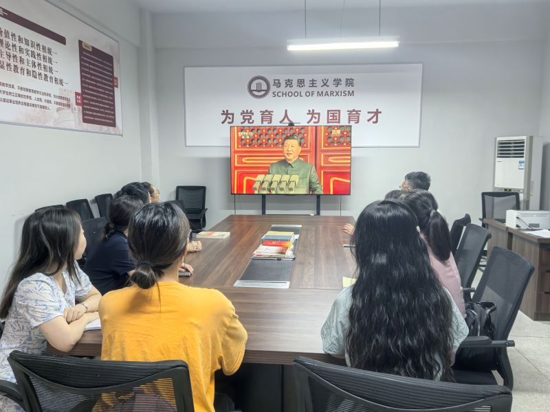 2025年9月3日,正值中国人民抗日战争暨世界反法西斯战争胜利80周年纪念日。为铭记历史,缅怀先烈,马克思主义学院全体教师共同观看直播盛况。清晨9时,北京天安门广场隆重举行了纪念大会,中共中央总书记、国家主席、中央军委主席习近平发表了重要讲话,并对部队进行了检阅。习近平总书记强调:“我们要继承和发扬伟大的抗战精神,以坚定的信念和不懈的努力,为实现中国式现代化和推进国家强盛、民族复兴的宏伟事业而团结奋斗。”紧接着,45个方(梯)队依次通过天安门广场,接受检阅。本次阅兵活动以“铭记历史、缅怀先烈、珍爱和平、开创未来”为主题,成为一堂深入人心的爱国主义教育课。