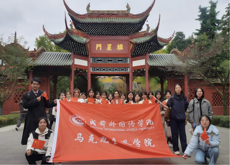 2025年11月11日下午,马克思主义学院大学语文教研室马利、徐娇、李雨蔓三位老师带领学生赴崇州罨画池,开启一场“感受罨画池之美,传承陆游爱国情怀”的文化实践之旅。本次活动以实景研学为载体,通过实地探访、现场吟诵、视频解读等多元形式,将爱国主义教育与传统文化浸润深度融合,引导学子从中华优秀传统文化中汲取精神养分,厚植家国情怀。