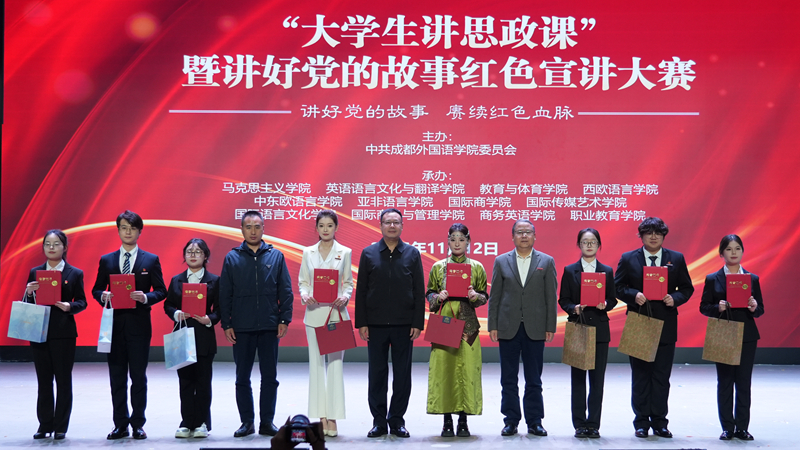 在深入学习贯彻党的二十届四中全会精神之际,由学校党委主办的“大学生讲思政课”暨讲好党的故事红色宣讲大赛决赛于11月12日—13日在成都校区观澜堂、宜宾校区大洋州厅相继举行,引领全校进一步深入贯彻落实习近平总书记关于思政课建设的重要论述,用党的创新理论铸魂育人,通过朋辈示范增强思政课的感染力和吸引力。校长张华春、副校长沈光临、校长助理龙成松出席并为获奖选手颁奖,各职能部门、二级学院负责人与千余名师生现场观赛,同上一堂“大思政课”。